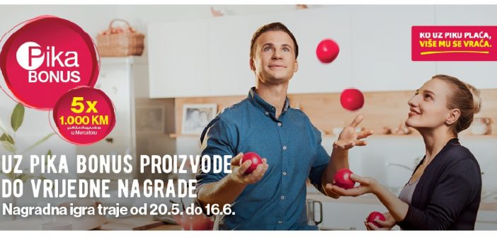 Svi kupci koji u periodu od 20. maja do 16. juna 2021. godine izvrše kupovinu najmanje jednog proizvoda, označenog na polici oznakom “Pika Bonus”, uz obavezno korištenje Pika kartice, direktni su učesnici nagradne igre, te postaju potencijalni dobitnici pet vrijednih poklon bonova u iznosu od 1.000 KM za kupovinu u Mercatoru.