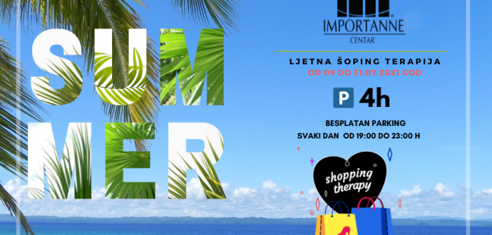 Ljetna šoping terapija vas čeka u u Importanne centru već od 09.07.2021 god. Ovog mjeseca uživat ćete u mnogim pogodnostima sa nama,  a posebno vas čekaju popusti do 80% u multibrandconcept store-u 5th Avenue kao i popusti do 50% u CARPISA & CARPISA GO prodavnicama. Kako bi ste doživjeli pravu ljetnu šoping terapiju u prodavnicama LINDEX i Blukids potražite sezonske popuste.