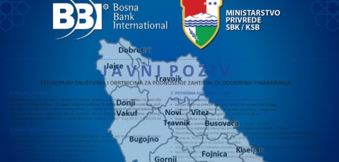 Na osnovu Ugovora o poslovnoj saradnji Ministarstva privrede Srednjobosanskog kantona i Bosna Bank International d.d. Sarajevo potpisanog 11.10.2021. godine, objavljen je Javni poziv privrednim društvima i obrtnicima sa područja Srednjobosanskog kantona za podnošenje zahtjeva za odobrenje finansiranja.