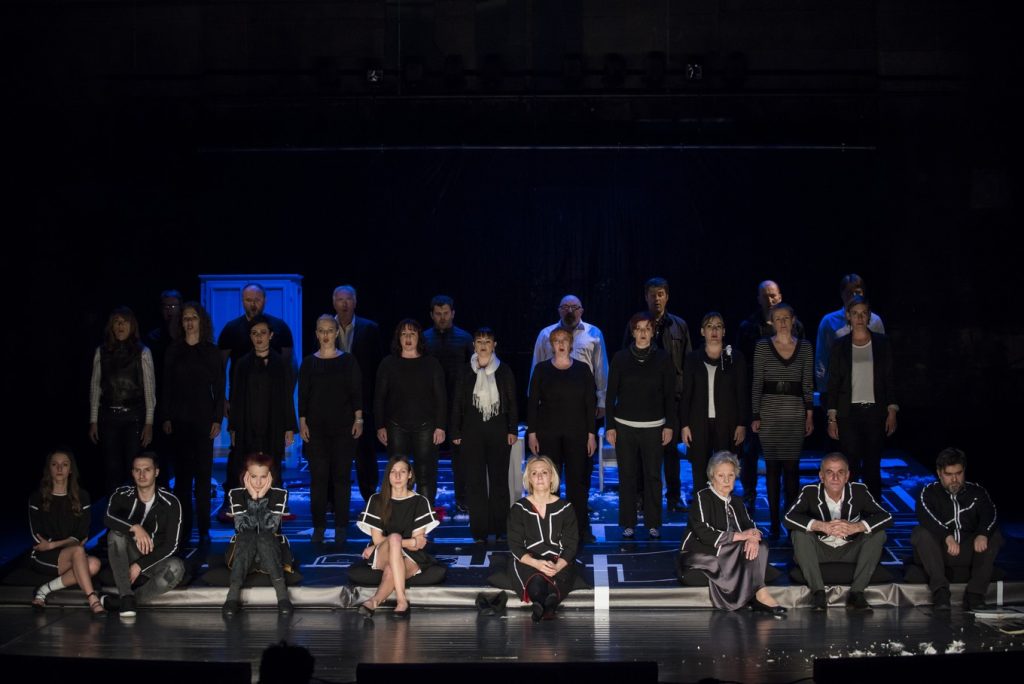U predstavi igraju: Ejla Bavčić, Izudin Bajrović, Kaća Dorić, Aleksandar Seksan, Emina Muftić, Amila Terzimehić, Dina Mušanović, Vedran Đekić, Danijel Žontar, članovi baletnog ansambla Hariz Šabanović i Jasenko Matković, te članovi hora Opere NPS.
