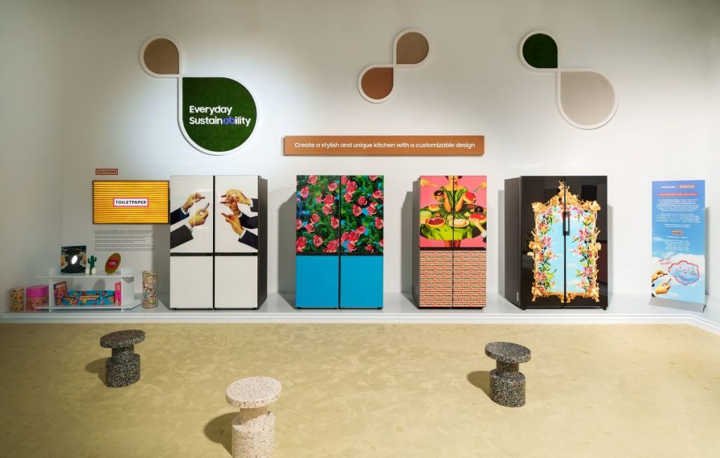 Ovogodišnji izložbeni prostor u prvi plan stavlja težnje kompanije Samsung u pogledu održivosti, naglašavajući niz novih i uzbudljivih saradnji. Osim demonstracije kako Samsung doprinosi održivosti kroz cjelokupni životni ciklus proizvoda te osnažuje životni stil korisnika uz povezanost uređaja, štand uključuje dinamičnu izložbu Seun Seungji Muna i Hosuk Janga, poznatih korejskih lifestyle dizajnera. Ova izložba ističe nova, limitirana izdanja Bespoke panela u saradnji s TOLIETPAPER, kreativnim studijem sa sjedištem u Milanu.