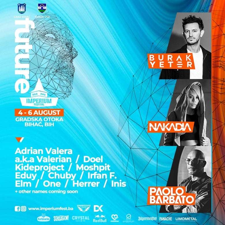 – Drago nam je što nam ove godine dolazi Burak Yeter. Renomirani DJ i producent turskog porijekla rastuća je svjetska zvijezda i nalazi se na 76. mjestu u Top 100 izvođača na DJMAG listi. Vjerovali ili ne, želi napraviti prvi DJ performans u svemiru, a krenut će iz Španije na ovo futuristično putovanje. Njegov planetarno popularni hit “Tuesday” postao je klupski i radijski fenomen, a pogledalo ga je više od 750 miliona ljudi na YouTubeu. Naša publika ovu i njegove druge izvedbe imaće priliku čuti u Bihaću. To nije sve što smo pripremili za posjetioce Imperium festivala koji su najavili svoj dolazak iz cijelog regiona. Pored Buraka Yetera nastupit će i Nakadia i Paolo Barbato. Nakadia je svojom techno storijom na Tajlandu ušla u historiju proizvodeći kultni događaj “Nakadia Welcomes” kroz koji je ugostila Loco Dice i legendarne elektronske izvođače poput Svena Vätha. Pripremamo spektakularni Imperium Festival stage za njenu nevjerovatnu egzibiciju.