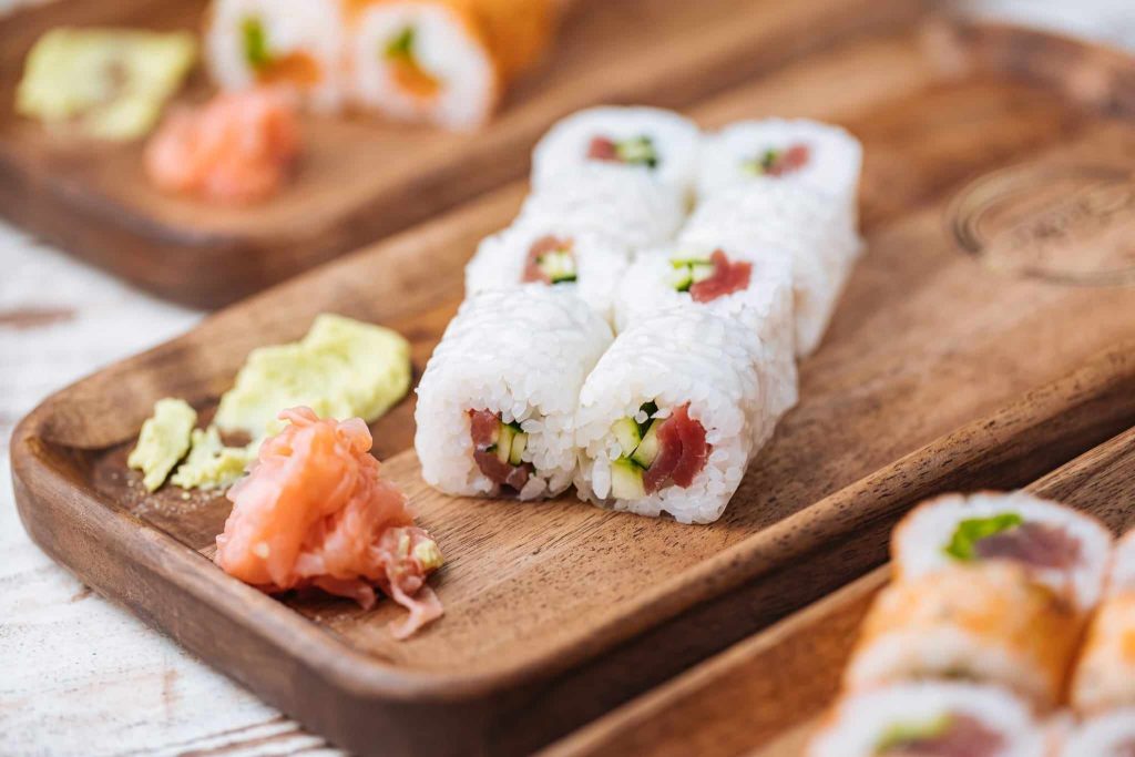 Neizostavni dodaci sushija su wasabi – japanski hren, soja sos i ukiseljeni đumbir.