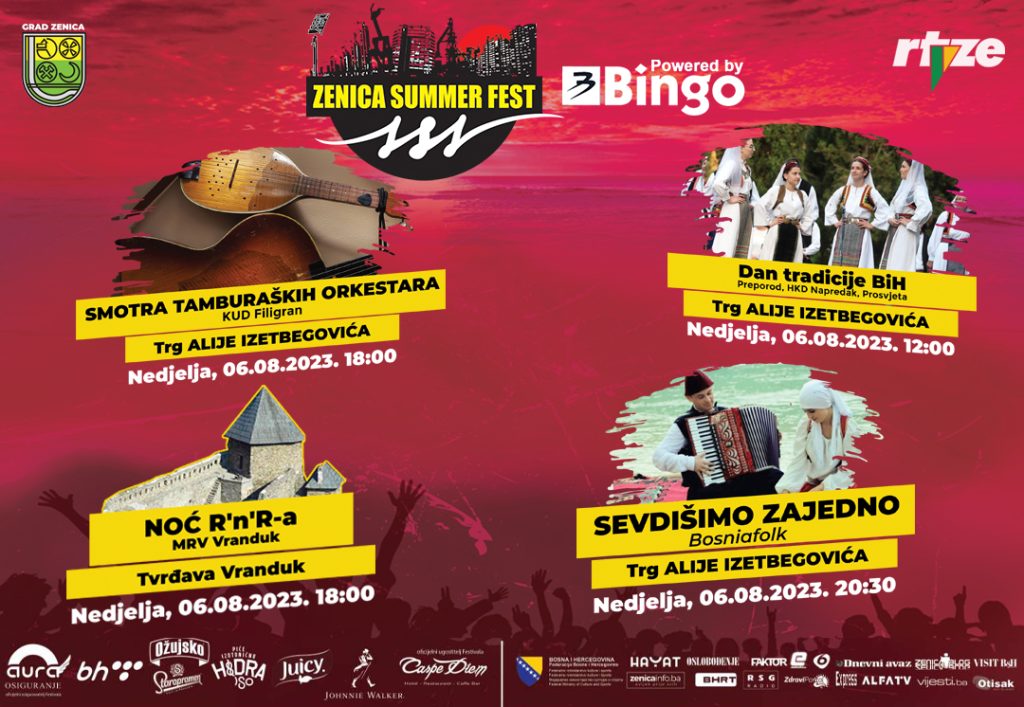 Šesti po redu Zenica Summer Fest powered by Bingo u organizaciji Gradske uprave Zenica i uz tehničku realizaciju Javnog preduzeća Radio-televizija Zenica, ponovo će ovog ljeta obogatiti turističku ponudu Zenice zabavnim i interesantnim muzičkim sadržajima, a bit će realizirano čak 30 programskih aktivnosti i sadržaja tokom deset festivalskih dana.