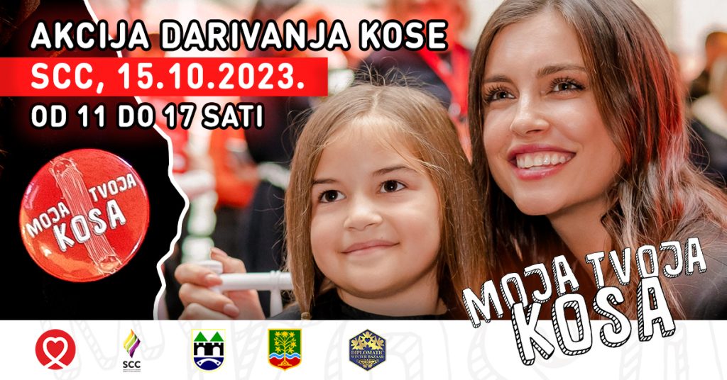 Pozivamo sve građane na javnu akciju šišanja i darivanja kose za projekat „Moja kosa tvoja kosa“, koja će se održati 15.10.2023. godine od 11 do 17 sati u Sarajevo City Center (SCC). Akciji će prisustvovati i ambasadorica projekta Amra Džeko.