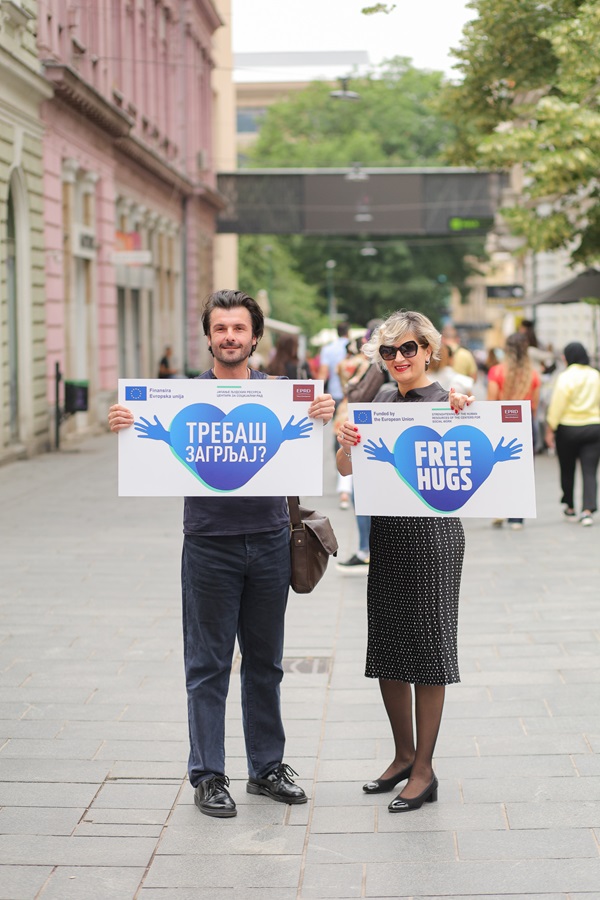 Događaj Free Hugs dio je šireg projekta „Jačanje ljudskih resursa centara za socijalni rad“, koji finansira Evropska unija, s ciljem unapređenja rada centara za socijalni rad širom Federacije BiH, Republike Srpske i Brčko distrikta.