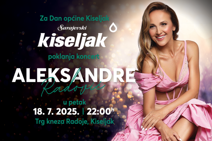 Sarajevski kiseljak i ove godine, već tradicionalno, povodom Dana općine Kiseljak organizira besplatan koncert za sve građane i goste grada. Koncert će se održati u petak, 18. jula s početkom u 22.00 sata na Trgu kneza Radoje, a ovogodišnja gošća i glavna zvijezda večeri bit će poznata regionalna pop izvođačica Aleksandra Radović.