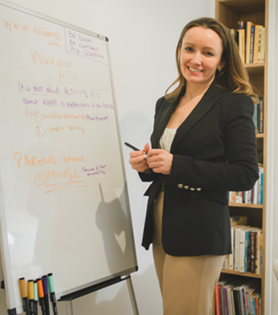 U to vrijeme ABA program bio je najpopularniji, pa sam odlučila studirati ABA na Florida Institute of Technology. Međutim, pred kraj studija saznala sam za RDI program, kurikulum koji su razvili američki liječnici dr. Steven Gutstein i dr. Rachelle Sheely. Suština RDI-ja je u edukaciji roditelja i izgradnji odnosa roditelj–dijete. Shvatila sam da je to bila „kockica“ koja mi je cijelo vrijeme nedostajala. Roditelji, koliko god ulagali u učitelje i terapeute, ako se sami ne osjećaju dobro i osnaženo, sve pada u vodu. Program prvo osnažuje roditelje, a tek onda dijete, jer je zdrav odnos temelj za napredak. RDI profesionalni trening završila sam u RDIConnect Houston, SAD.
