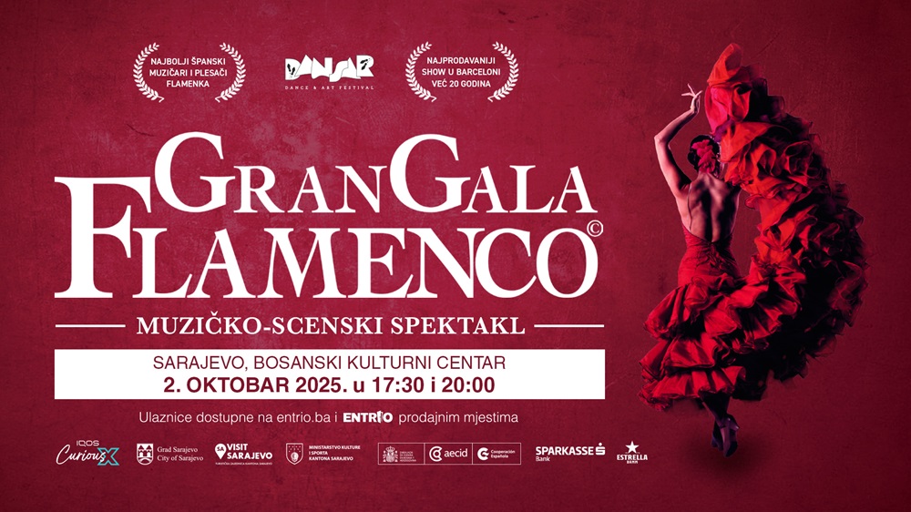 Najpoznatiji i najgledaniji flamenco spektakl iz Španije, Gran Gala Flamenco, stiže u Sarajevo 2. oktobra 2025. godine. Publika će u koncertnoj dvorani Bosanskog kulturnog centra imati priliku uživati u nezaboravnom muzičko-scenskom doživljaju koji spaja strast, muziku i ples u izvedbi vrhunskih umjetnika iz Barselone. Ovaj prestižni događaj održava se u okviru prvog Festivala plesa i umjetnosti Dansar, koji od 2. do 12. oktobra obogaćuje kulturni kalendar Sarajeva.