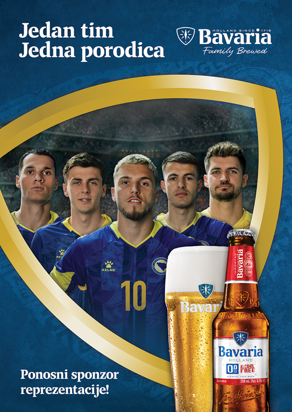 Nova kampanja „Jedan tim. Jedna porodica.“ već je pokrenuta. Reklama je snimljena i emitovana, a u njoj glavne uloge imaju reprezentativci Ermedin Demirović, Samed Baždar, Benjamin Tahirović, Luka Kulenović i Nikola Vasilj. Njihovi osmijesi i riječi prenose poruku da fudbal nije samo igra, nego pripadnost. Bavaria 0.0% je tu kao saveznik, na terenu i van njega. Kao potvrda da su pored znanja, posvećenosti i talenta, uspjesi rezultat podrške zajedništva.