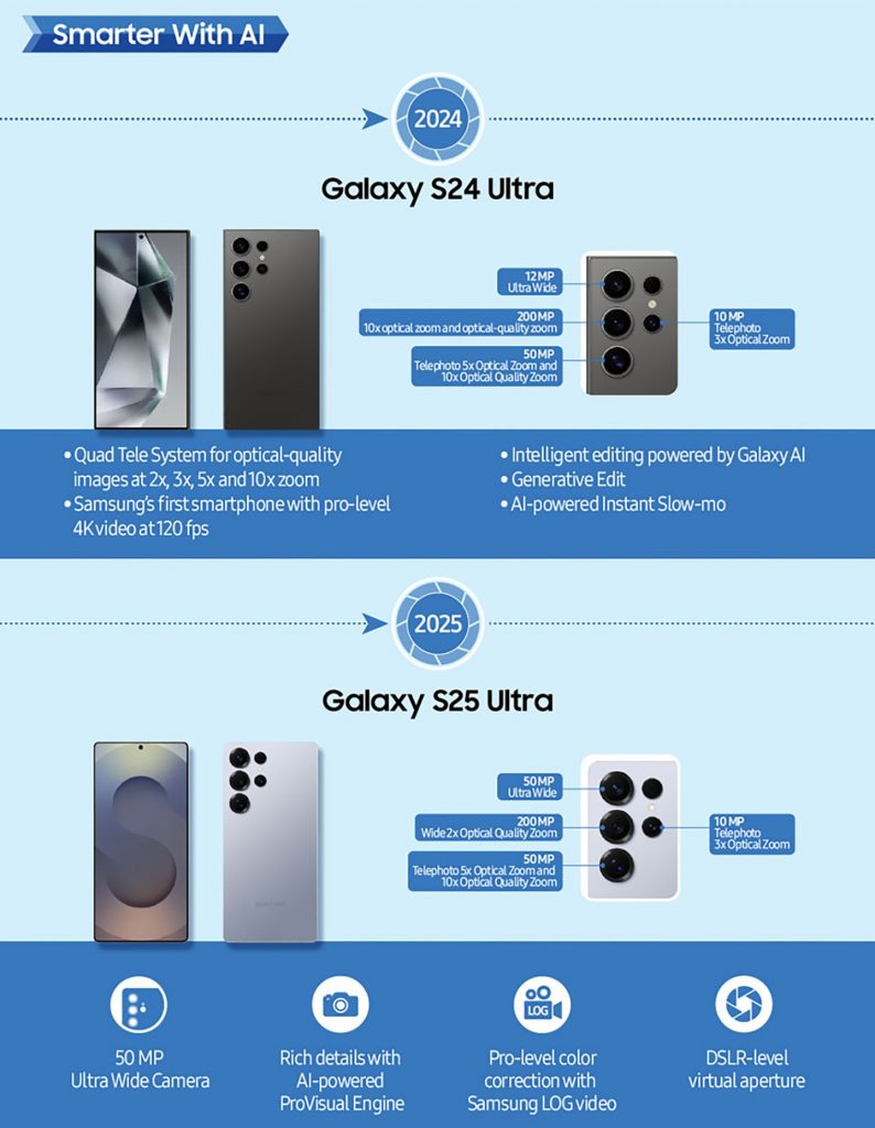 Samsung Electronics od samog početka prednjači u razvoju mobilnih kamera. Još 2010. godine prvi Galaxy S uređaj imao je zadnju kameru od 5 megapiksela, a danas, s Galaxy S25 Ultra modelom, dolazimo do nevjerovatne kamere ultra visoke rezolucije od 200 megapiksela, širokokutne kamere od 50 megapiksela, kao i niza naprednih Galaxy AI alata za uređivanje snimaka. Tokom godina, Samsung je neprestano pomjerao granice i postavljao nove standarde onoga što kamera pametnog telefona može biti.