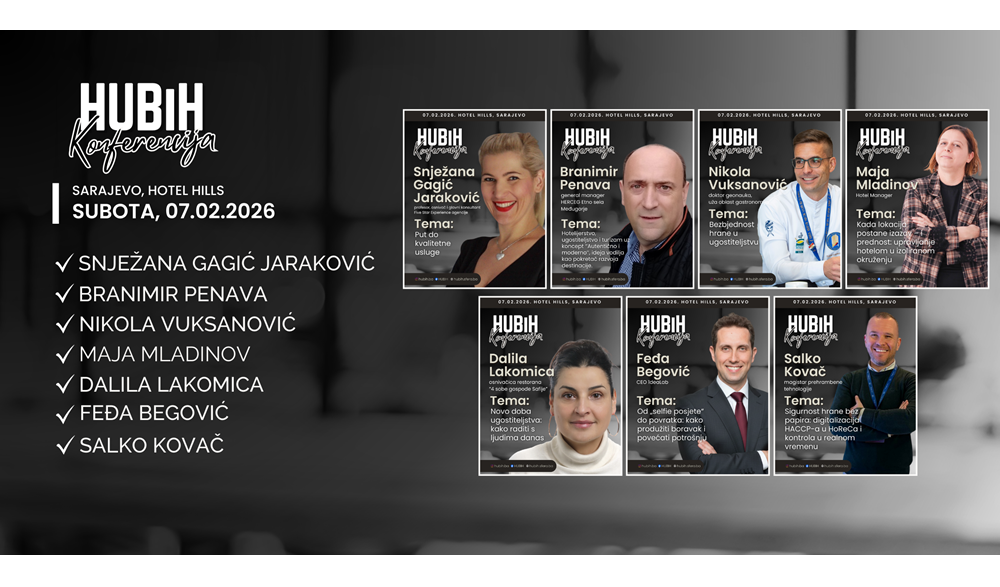Na Konferenciji HUBiH svoja izlaganja imat će: Snježana Gagić Jaraković, Nikola Vuksanović, Salko Kovač, Branimir Penava, Dalila Lakomica, Feđa Begović i Maja Mladinov, koji će govoriti o aktuelnim temama i trendovima u ugostiteljstvu i gastronomiji.